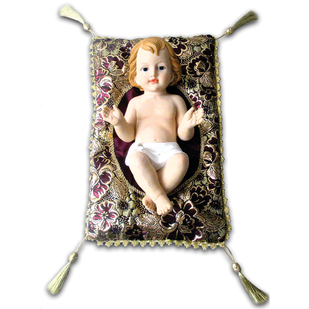 8" Baby Jesus with Burgundy Velvet Pillow SFBJ5