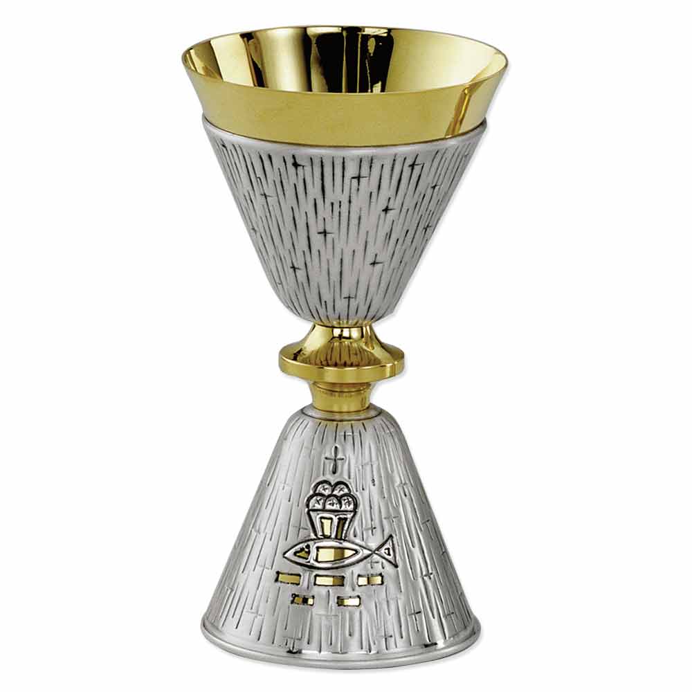 Loaves & Fishes textured Brass chalice with two-tone silver and gold plate.
