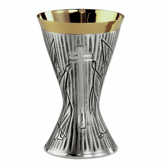 6 1/4" High Cross & Angels Heavily Textured Chalice