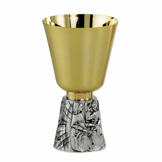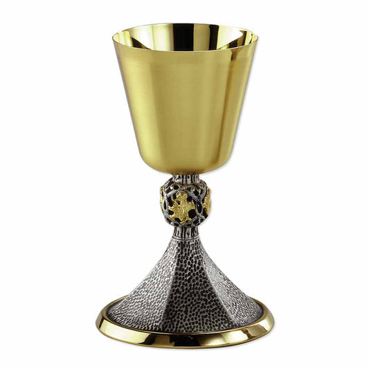 9 3/4" Hand Chiselled Two Tone Silver & Gold Plated Chalice