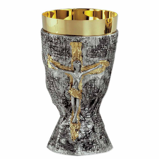 5 1/2" High Heavily Textured Crucifix Brass Chalice