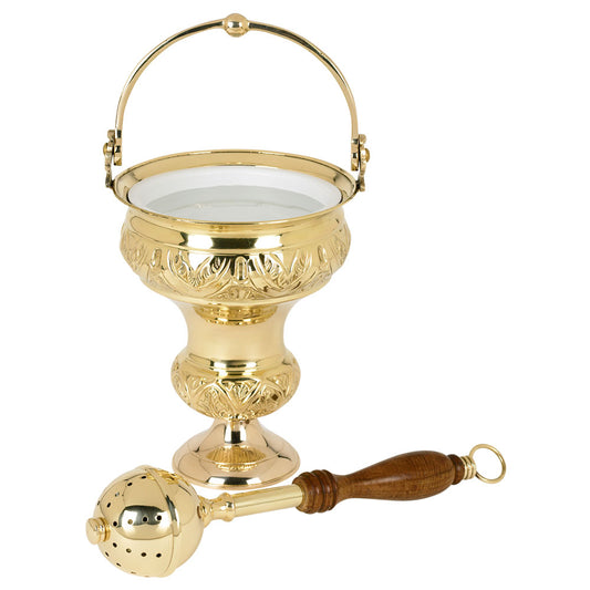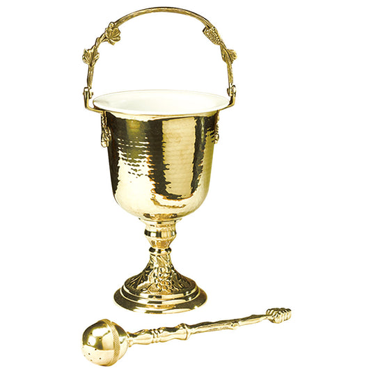 10" Gold Plated Holy Water Pot with Sprinkler
