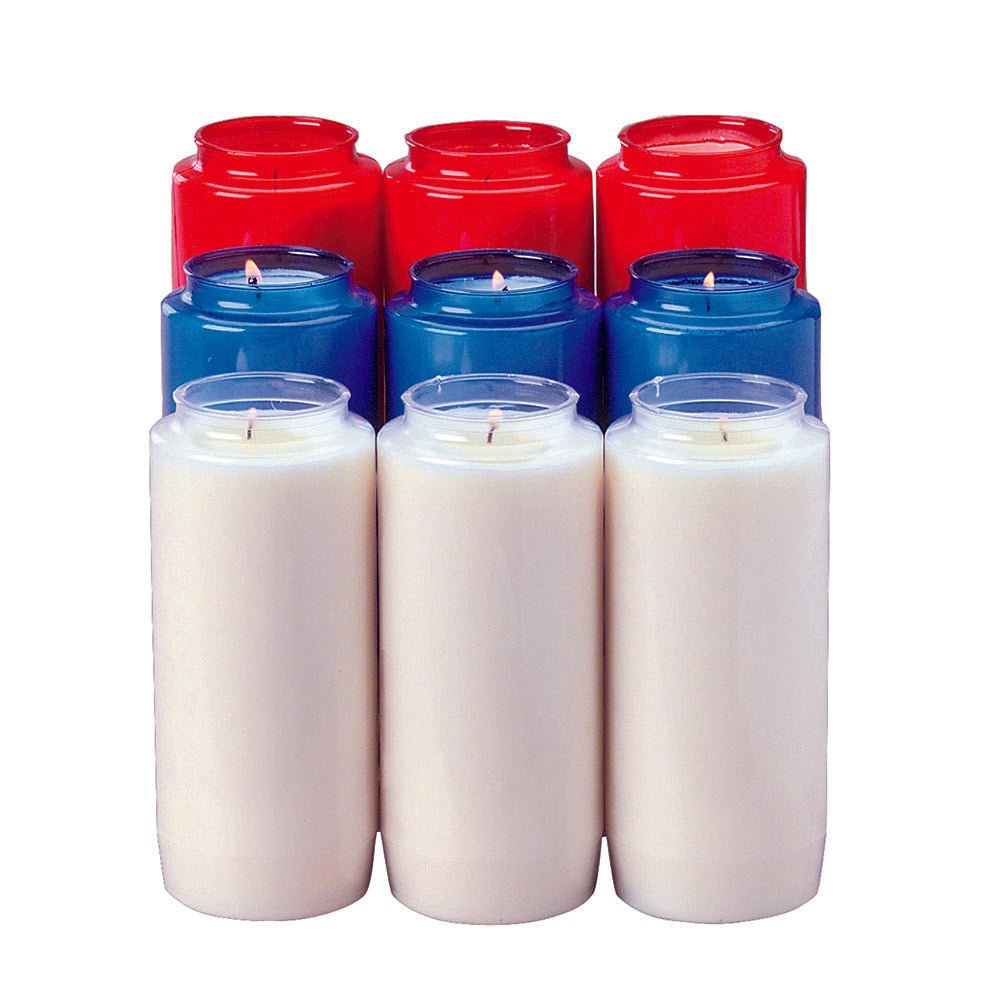 Dependable, clean-burning Sanctuary lights that last 9 days. Available in a choice of three colours: Red, Blue and Clear.