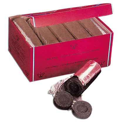 Each box contains 10 rolls of 10 charcoal tablets, 33mm diameter or 40mm diameter (totalling 100 tablets).