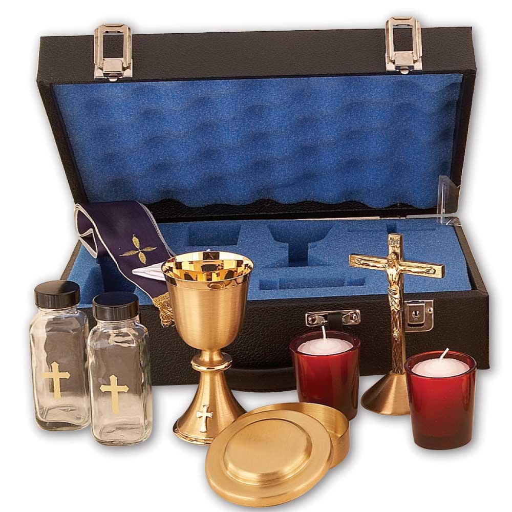 Home Mass Kit.Contains:* Chalice 5 1/2" ht 4oz* Host box cap 55* Crucifix ht 5 1/4"* Candle/Holder 2 1/2" ht