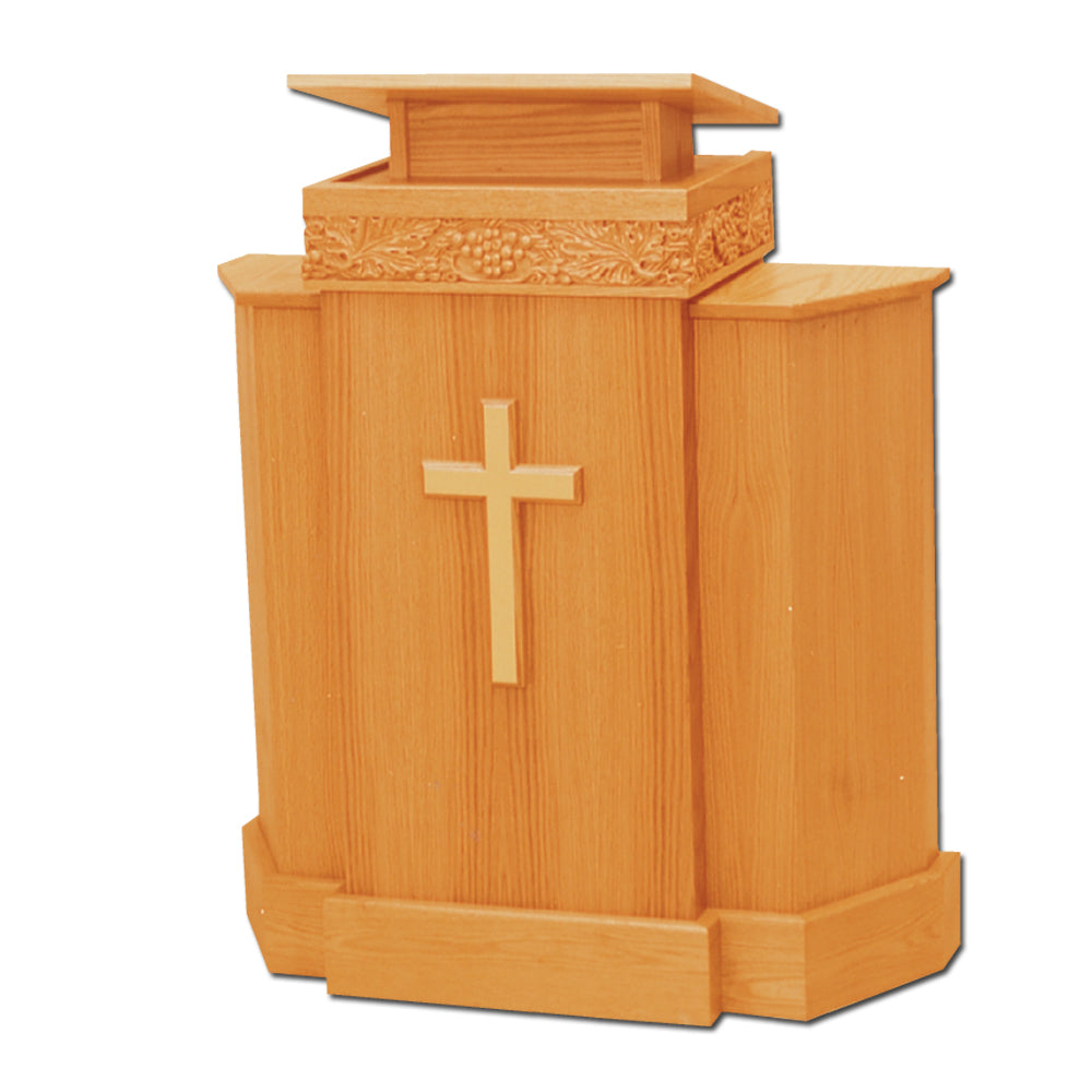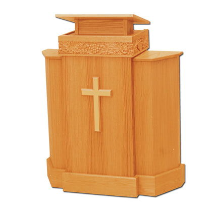 Oak pulpit measures 37" wide x 17" deep x 46" high.