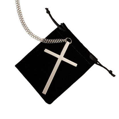 Silver plated clergy cross includes a 32" long chain and comes with a velvet pouch for safe storage.Not suited for engraving.3 1/2" high x 32" long chain.