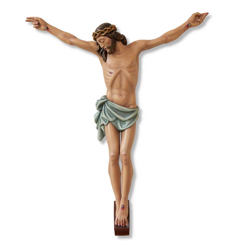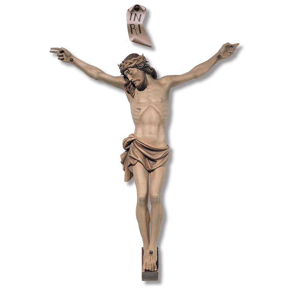 Our "Corpus with INRI" statue is beautifully designed to represent a poignant symbol of faith, available in both finely carved linden wood and durable fiberglass. Starting at a size of 60cm, this piece is versatile enough to complement a variety of settings from homes to sacred spaces. Prices begin at £1971, offering a choice for different budgets without compromising on quality. Additionally, it comes in several different finishes, allowing for further customisation to meet your aesthetic needs. Whether chosen for its spiritual significance or artistic value, this statue serves as a moving centrepiece in any environment.