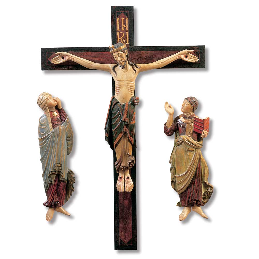 Our "Crucifixion Group" statue offers a compelling depiction of the Crucifixion, meticulously crafted from linden wood. This piece features a 60cm corpus on a 100 cm cross, capturing the profound solemnity and significance of this pivotal event. Priced at £6658, the statue's detailed artistry and careful construction reflect its quality and value. Ideal for sacred spaces and places of reflection, this statue serves as a powerful reminder of sacrifice and redemption, providing a focal point for contemplation and reverence in any setting.