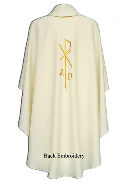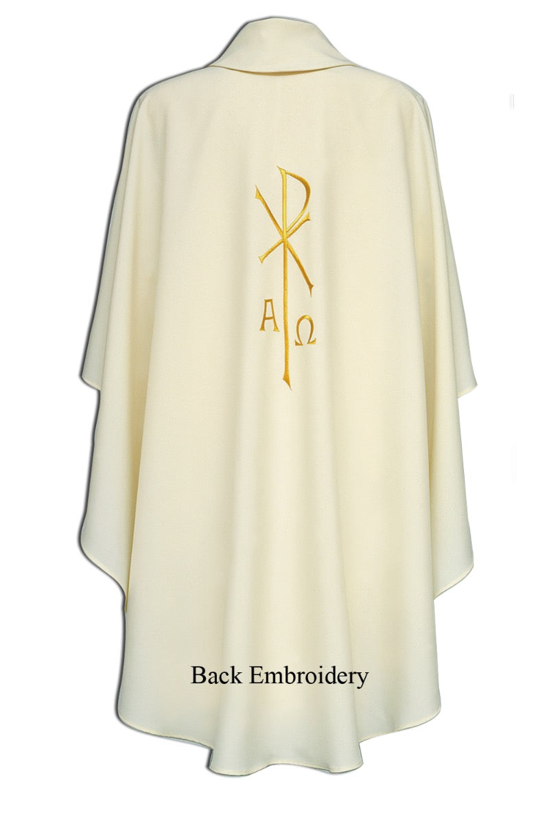 Full cut chasubles expertly tailored in 100% polyester by Italian vestment maker Desta.