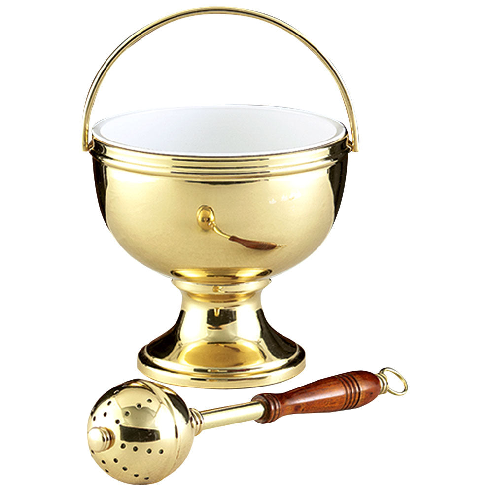 10" Gold Plated Holy Water Pot with Sprinkler