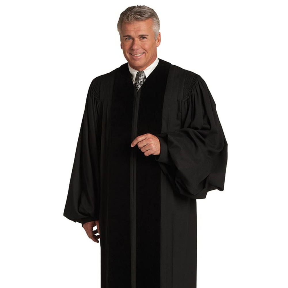 Tailored in black Wonder Crepe with black velvet panels. Features lined bell sleeves with deep cuffs and fluted over shoulders and across back.