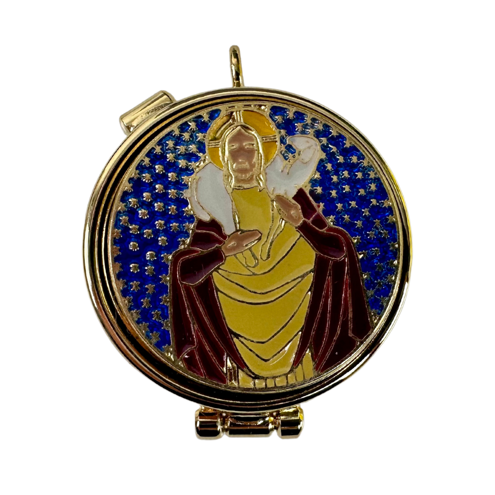 15 Capacity - 2 1/8" diameter, gold plated inside and out. Colouring is enamelled.