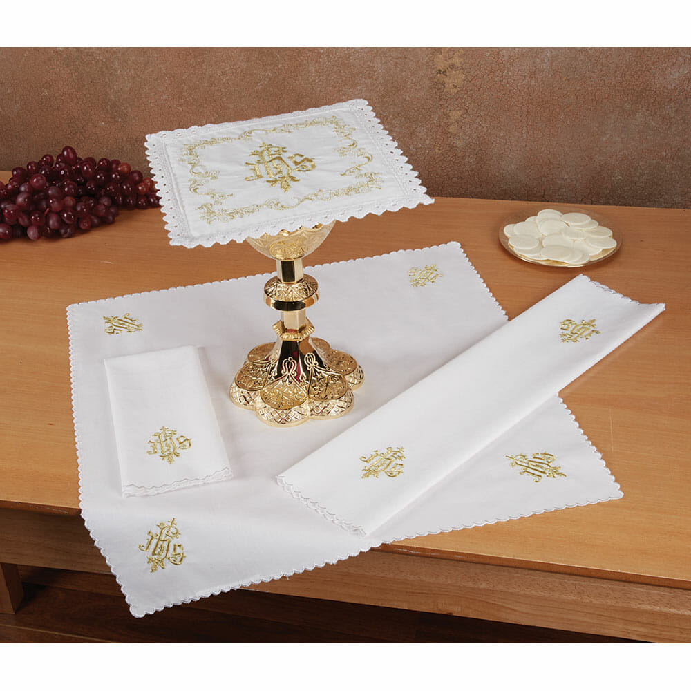 Embroidered IHS Altar Linens each item in this beautiful gift set is 100% cotton and features gold IHS embroidered designs.