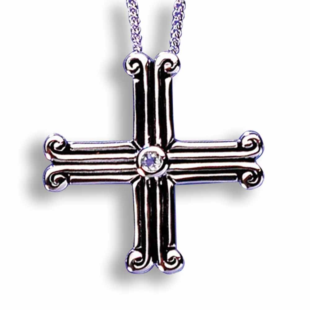 The Ephesus Cross with Blue Topaz Necklace is exquisitely crafted from the finest sterling silver.