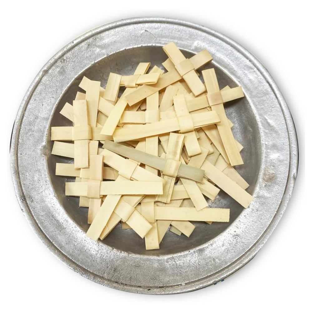Beautifully handmade by Indian artisans, these palm leaf crosses are a meaningful and versatile symbol of faith. Each cross measures approximately 2" x 3", making them ideal for various uses.