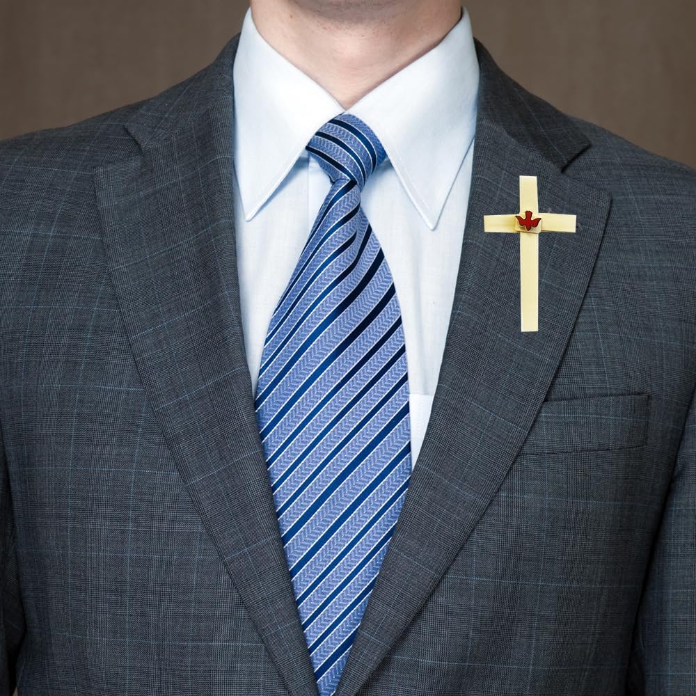 - Lapel Pin Design: Red enamel with a gold-outlined Holy Spirit Dove, symbolizing peace and divine guidance.