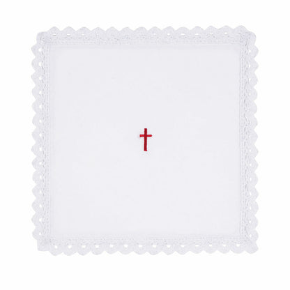 Complete the full set of Lace-Trimmed Cross Altar Linens! Each item in this beautiful gift set is 100% cotton and features Red Cross embroidered designs.
