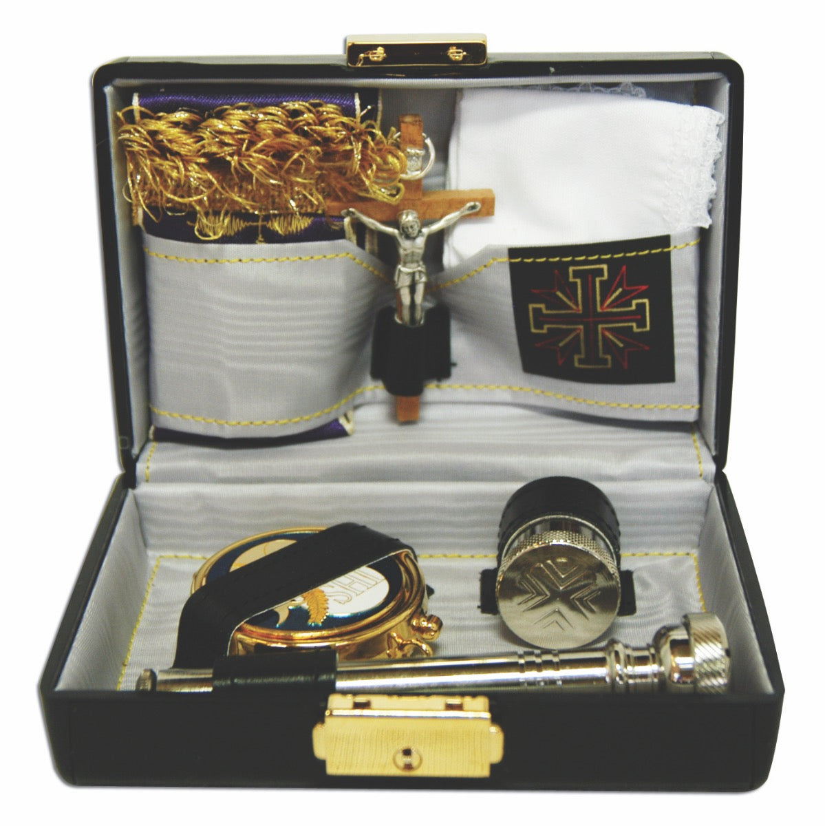 Includes Pyx, Oil Stock, Sprinkler, Crucifix, Stole, Linens in a strong case