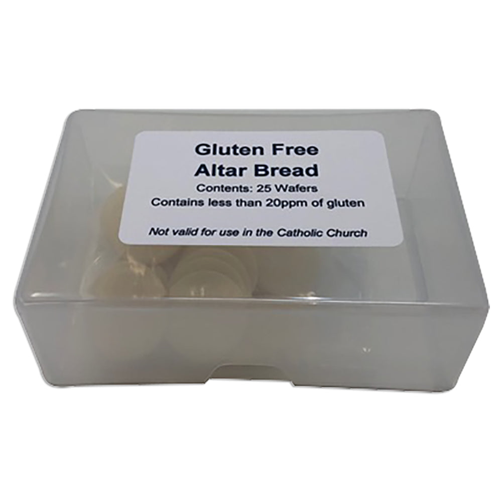 For those suffering from gluten intolerance, we now have available gluten free, sealed edge altar bread. Packaged in quantities of 25 complete with a re-sealable plastic container for storage. Contains less then 20ppm of gluten.