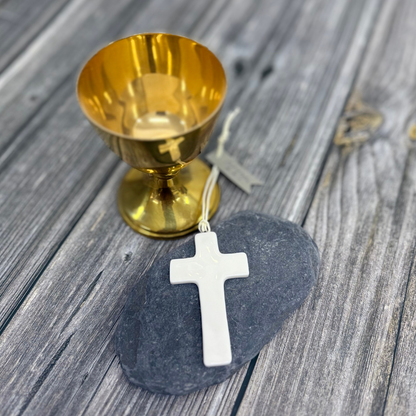 This elegant Porcelain Cross Hanger is a beautiful symbol of faith, perfect for hanging in your home, church, or as a thoughtful gift. Measuring 7 x 4 cm, it features a delicate yet durable design, making it ideal for decoration or personal devotion.