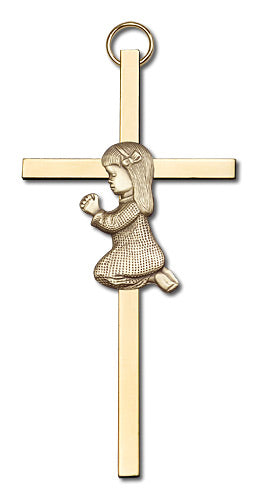 Praying Girl 4" Metal Wall Cross. Measures 4" high x 2" wide.