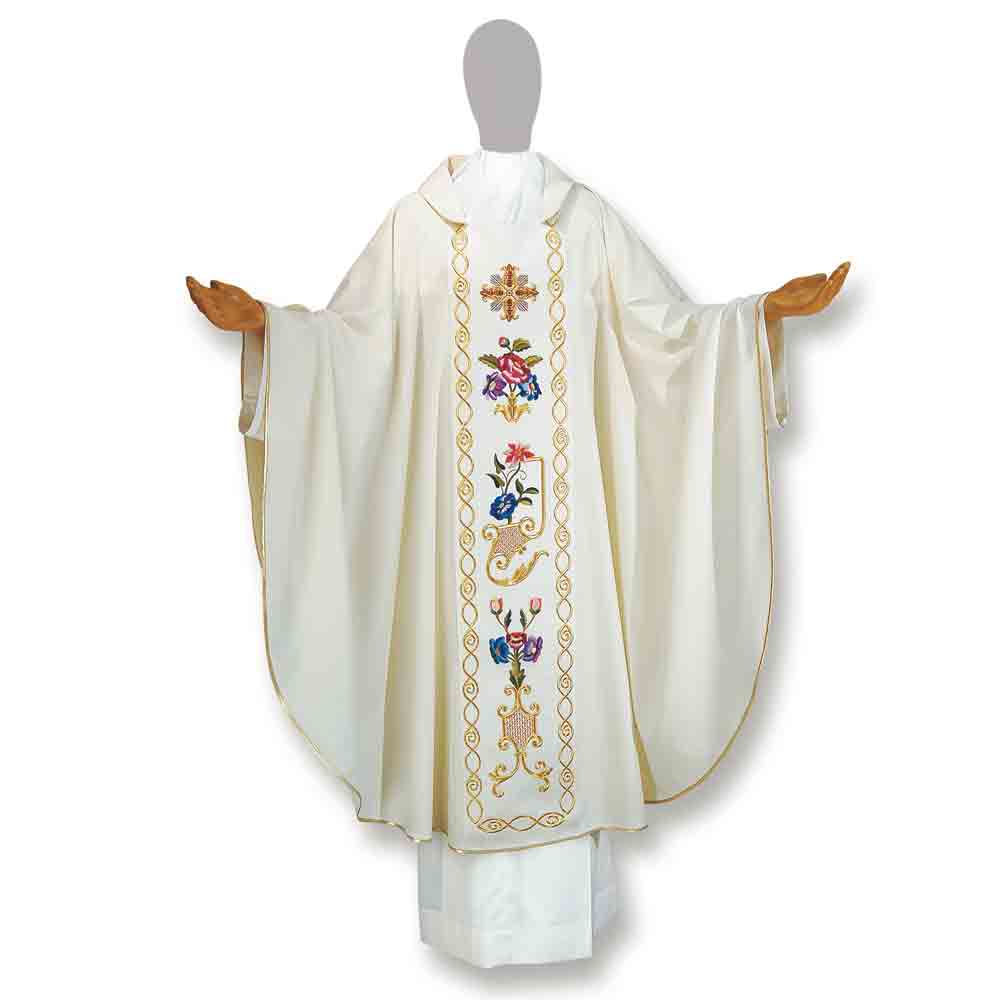 Pure Wool Gold Embroidered Flower Design Chasuble - Available in 4 Liturgical Colours