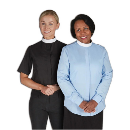 A touch of Spandex added to the classic cut women's clergy shirt makes it a breeze to care for and a pleasure to wear. The perfect choice for today's busy women. R. J. Toomey's Classic cut shirts feature a stylish tailored fit with a curved bottom hem that looks great both tucked in or out.