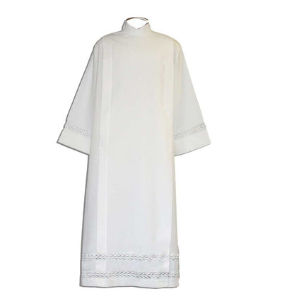 Tropical Weight Polyester/Wool Blend Alb with 1" Non-Tarnishing Silver Embroidered Bands.