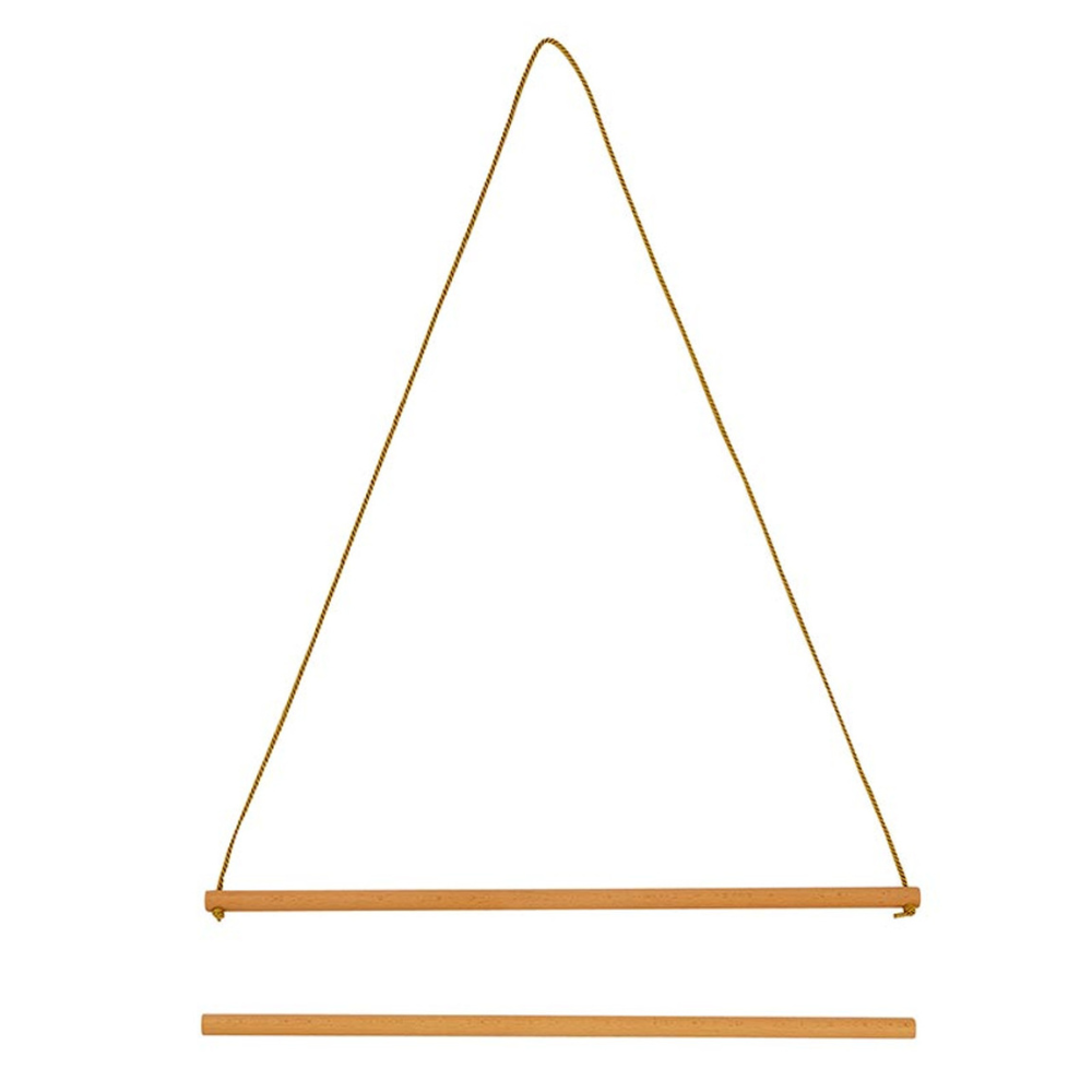 A set of wooden banner hangers, including a top pole with cord and a bottom pole to keep the banner weighted down.